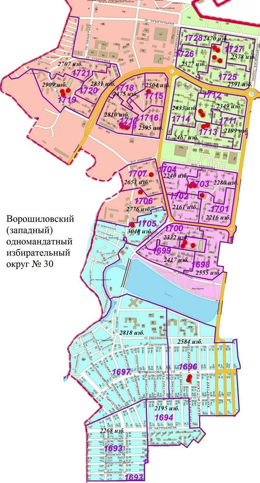 Избирательные участки №№ 1693, 1694, 1696 – 1707, 1711 – 1721, 1725 – 1728.